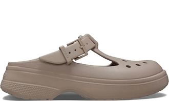 Crocs Classic Mary Jane Clog в бежевом цвете — это утончённая вариация классических сабо с женственным акцентом. Модель выполнена из лёгкого материала Croslite™ и дополнена регулируемым ремешком, обеспечивающим комфорт и надёжную посадку. Нейтральный бежевый оттенок делает их универсальным выбором для повседневной носки.