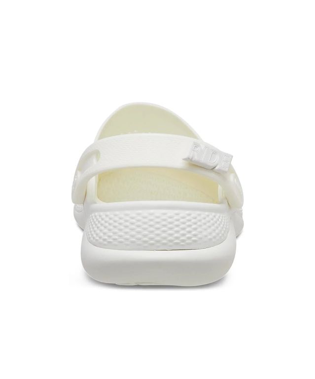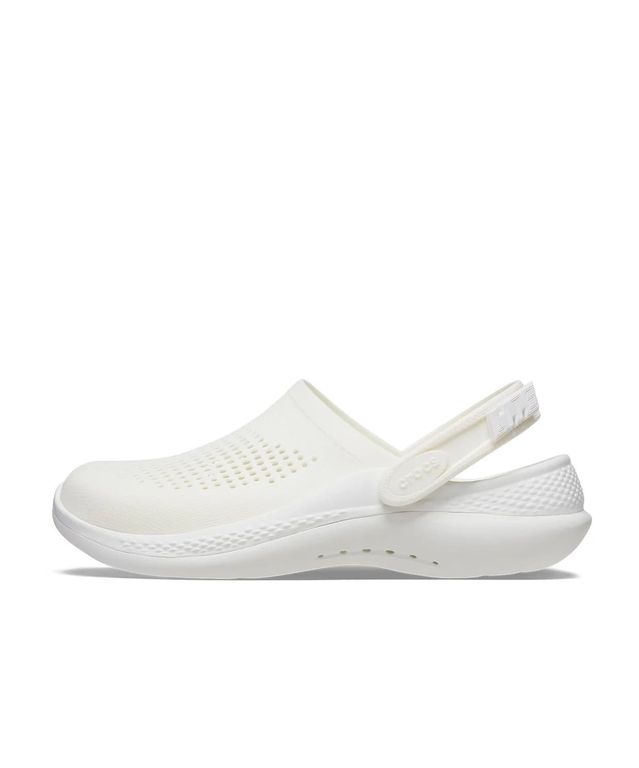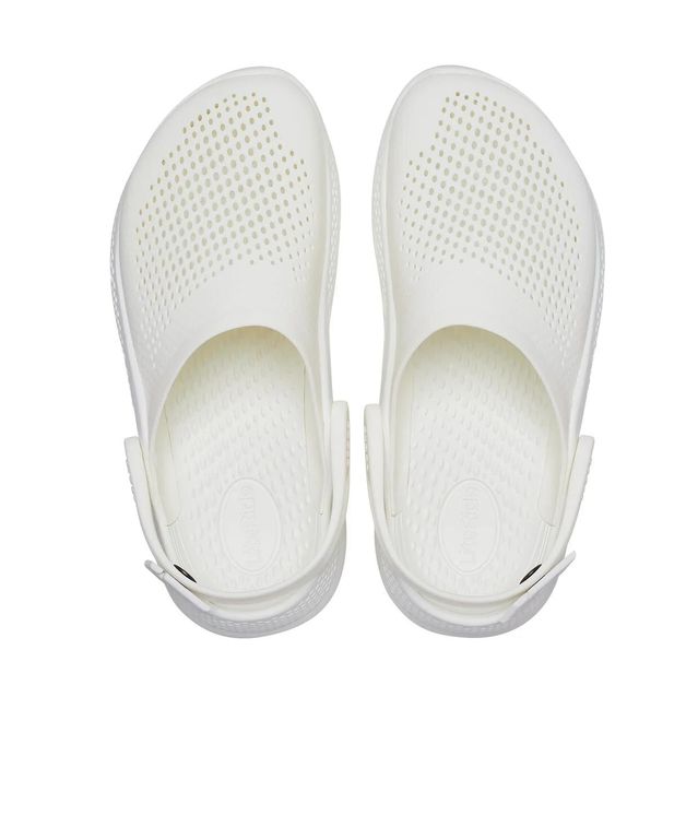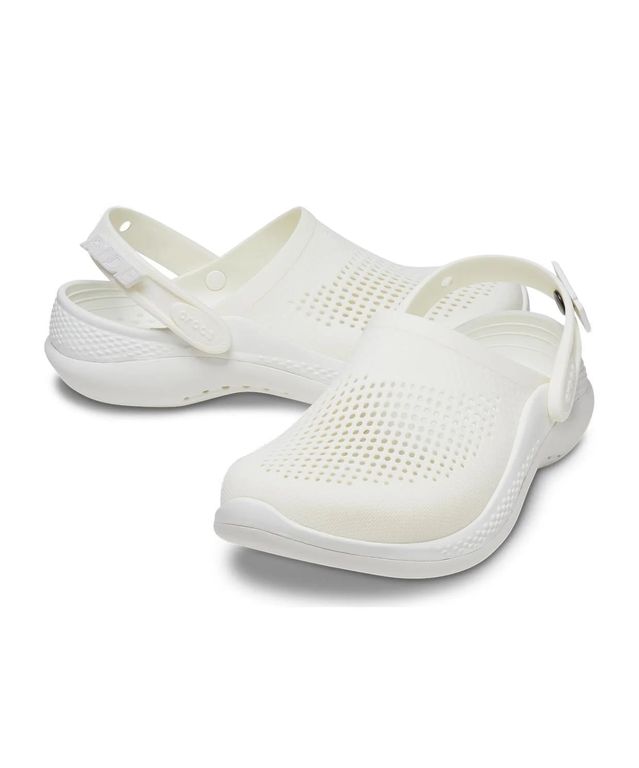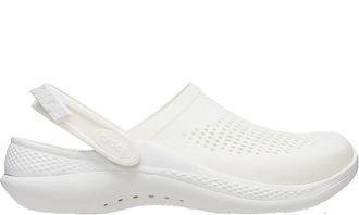 Crocs LiteRide Clog в белом цвете изготовлены из лёгкого и мягкого материала Croslite с инновационной стелькой LiteRide, обеспечивающей упругую амортизацию. Верх с перфорацией хорошо вентилируется, а эластичный ремешок надёжно удерживает пятку. Модель подойдёт для активного дня — комфортно даже при длительной носке.