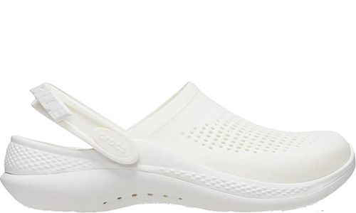 Crocs LiteRide Clog в белом цвете изготовлены из лёгкого и мягкого материала Croslite с инновационной стелькой LiteRide, обеспечивающей упругую амортизацию. Верх с перфорацией хорошо вентилируется, а эластичный ремешок надёжно удерживает пятку. Модель подойдёт для активного дня — комфортно даже при длительной носке.