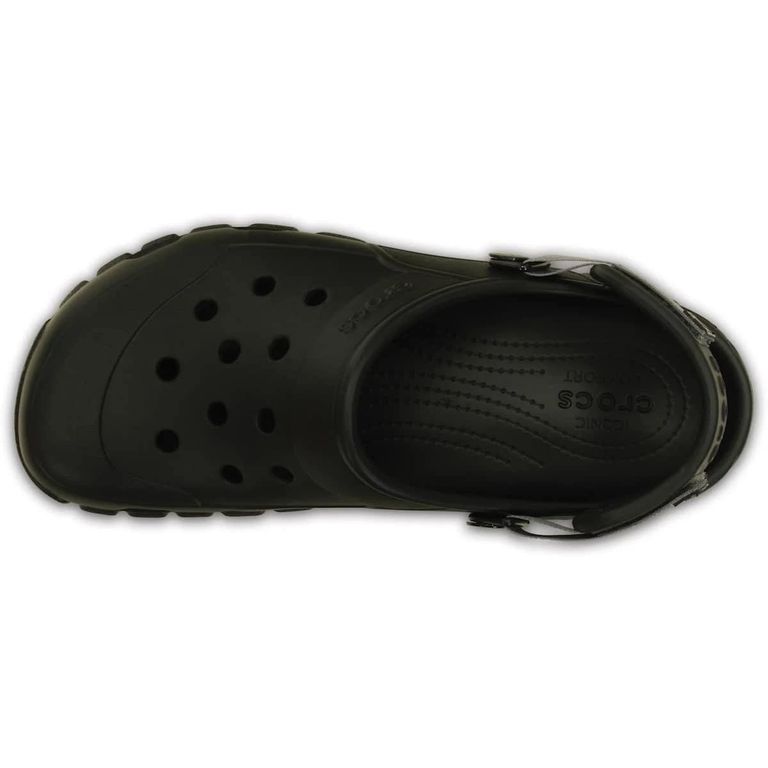 Crocs Offroad Sport Clogs в чёрном цвете выполнены из прочного и лёгкого Croslite с усиленной рельефной подошвой, которая обеспечивает устойчивость на разных поверхностях. Регулируемый задник плотно фиксирует стопу, а вентиляционные отверстия сохраняют комфорт при длительной носке. Удобный вариант для активного отдыха и повседневного использования