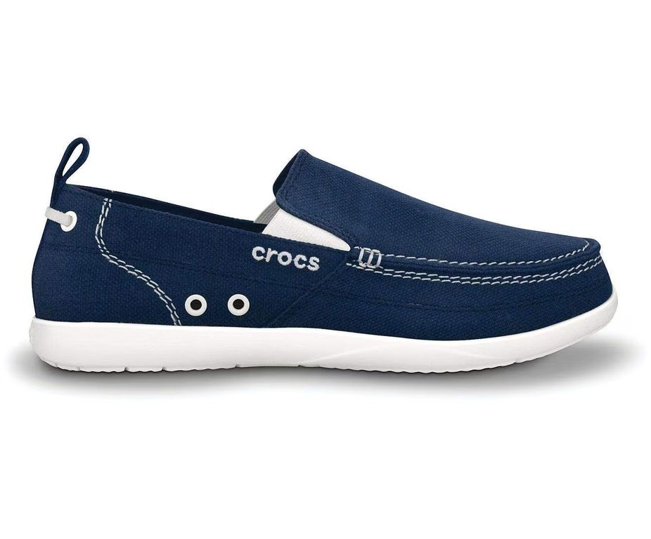 Crocs Walu Navy White выполнены в классическом сочетании тёмно-синего верха и белой подошвы, дополненным текстильными и замшевыми элементами. Лёгкая амортизация и гибкая подошва обеспечивают комфорт и удобство при повседневной носке